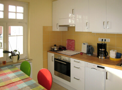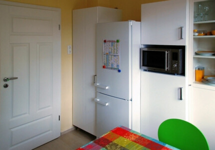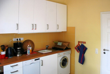 Die Küche ist mit einem Backofen und vier Kochplatten, eine Mikrowelle, einer Spülmaschine, einem Kühlschrank und einer Waschmaschine ausgestattet. Sie steht allen Gästen zur gemeinschaftlichen Nutzung zur Verfügung.