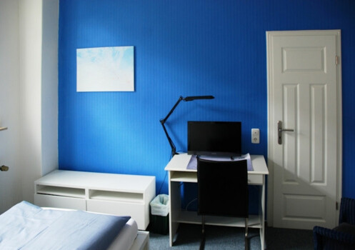 Das blaue Zimmer ist unser Einzelzimmer und liegt auf der Westseite des Hauses.