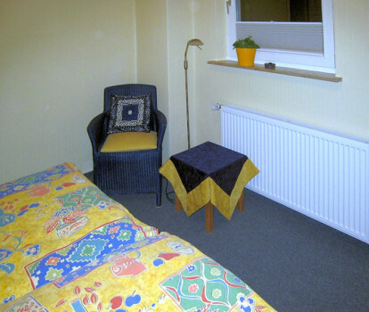Das gelbe Zimmer zeigt zum Osten; es ist unser zweites Doppelzimmer.