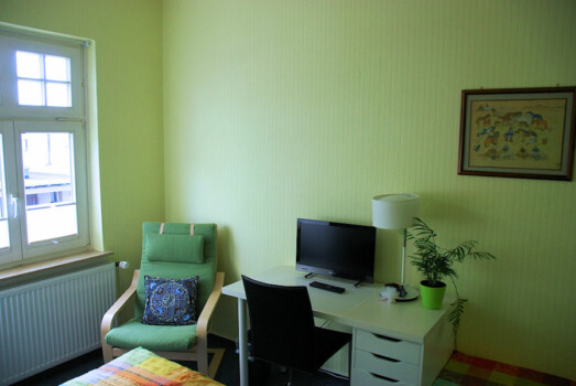 Alle Räume sind modern eingerichtet und mit Teppichboden ausgestattet; die Betten sind für Allergiker geeignet. Bei längeren Aufenthalten stellen wir einmal wöchentlich frische Bettwäsche und Handtücher bereit.Zur leichteren Orientierung haben wir die Zimmer nach Farben eingeteilt. Dadurch finden Sie in der Küche das zu Ihrem Zimmer gehörende Geschirr in den jeweiligen Schränken.