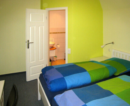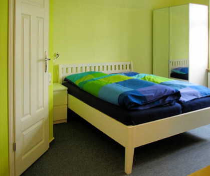 Das grüne Zimmer ist zum Süden orientiert und mit einem Doppelbett ausgestattet.